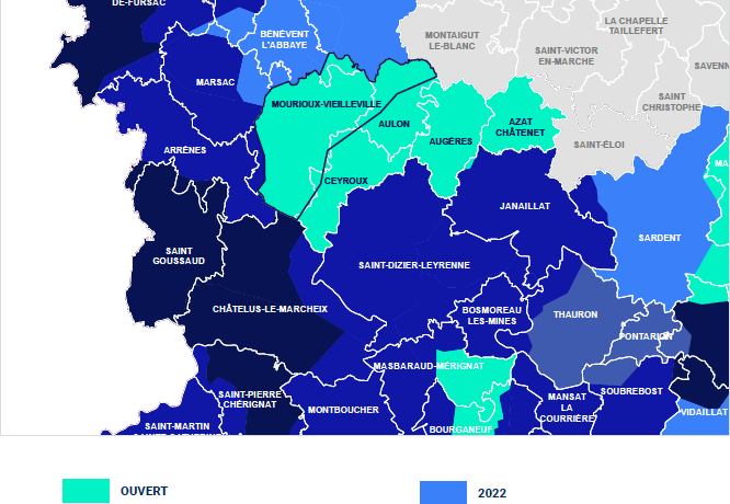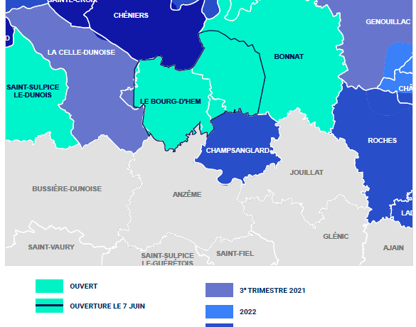 A Auzances ; Le Compas ; Rougnat et La Souterraine. L’éligibilité à la fibre optique s’étend en Creuse grâce au réseau public DORSAL. Vendredi 9 juillet, 1010 nouvelles lignes optiques ouvrent à la commercialisation sur le territoire des Communautés de communes Marche et Combraille en