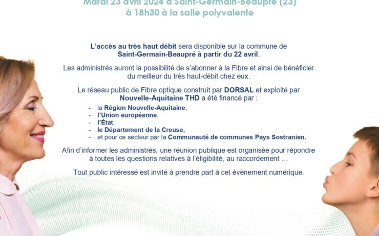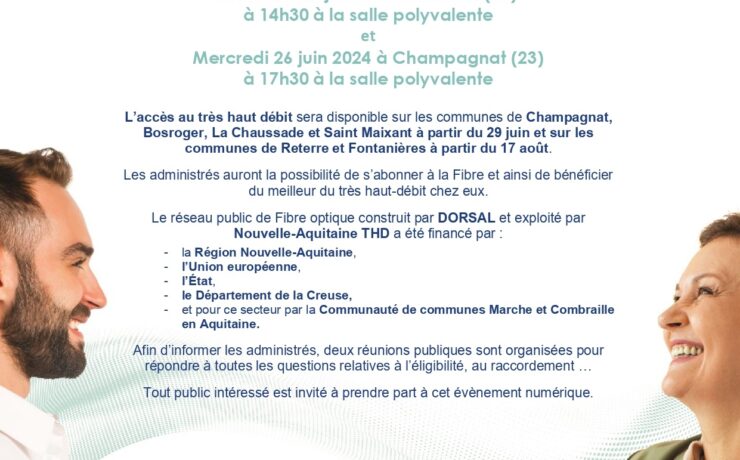 lundi 8 juillet 2024 – à Sannat : à 17h30 – salle polyvalente L’accès au très haut débit sera disponible sur la commune de Sannat à partir du 16 juillet. Les administrés auront la possibilité de s’abonner à la Fibre et ainsi de bénéficier du