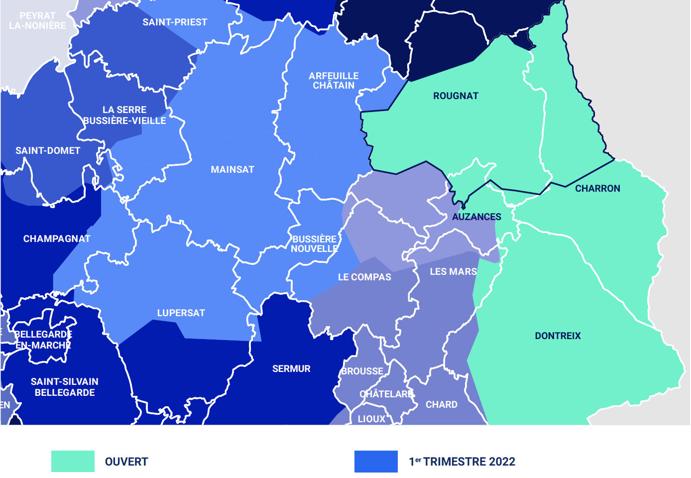 Ce réseau construit par DORSAL, exploité et commercialisé par Nouvelle-Aquitaine Très Haut Débit (NATHD) est réalisé grâce à la mobilisation de la Région Nouvelle-Aquitaine, du Département de la Creuse et des intercommunalités, avec le soutien de l’État et de l’Union Européenne (FEDER).