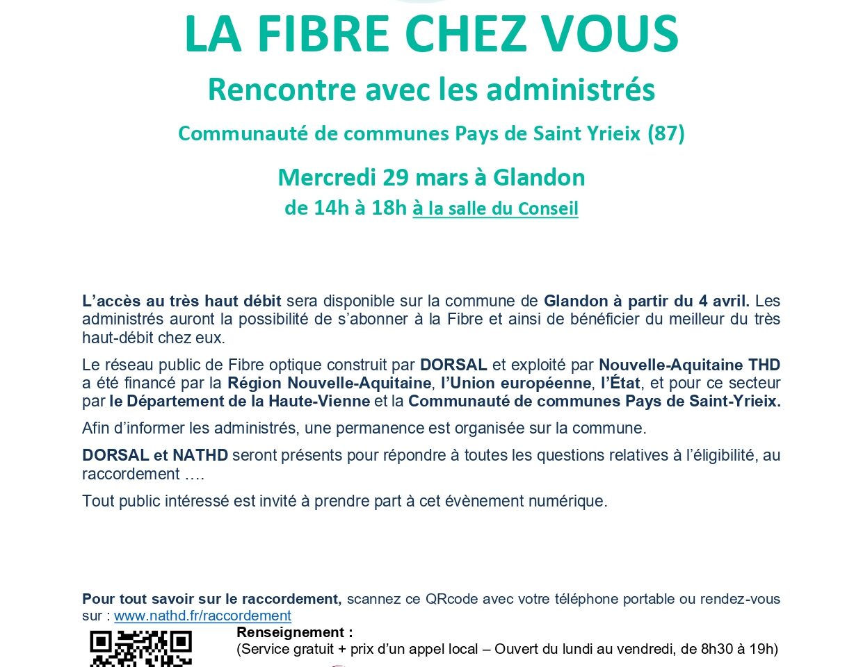 L’accès au Très haut débit sera disponible sur la commune de Glandon à partir du 04 avril. Les administrés auront la possibilité de s’abonner à la Fibre et ainsi de bénéficier du meilleur du Très haut-débit chez eux.