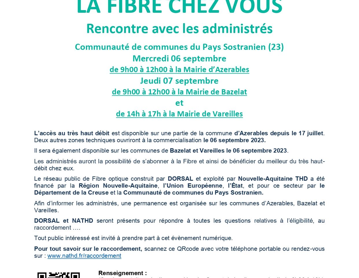 L’accès au très haut débit sera disponible sur les communes d’Azerables, Bazelat et Vareilles à partir du 06 septembre 2023.