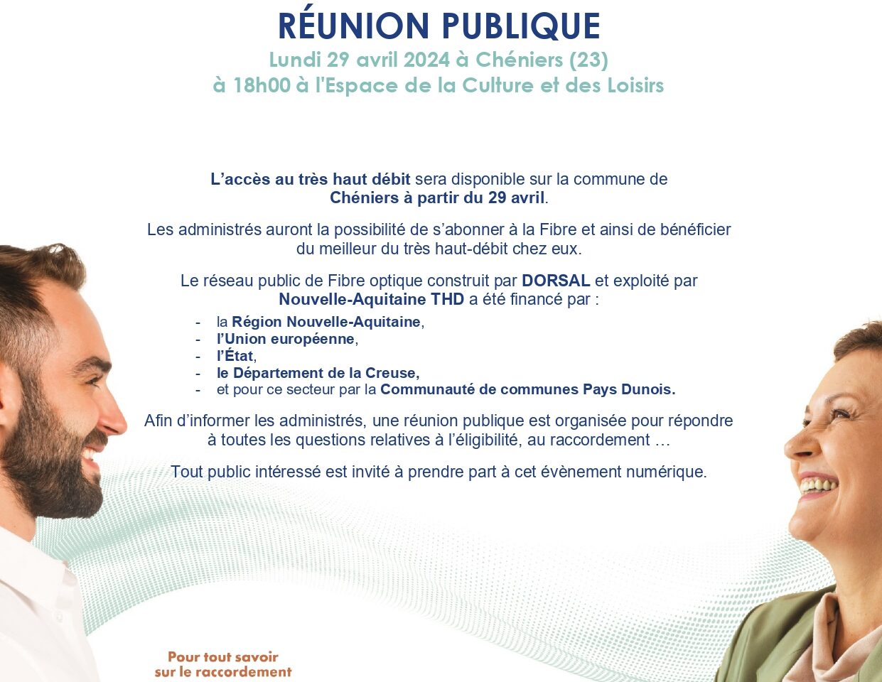 Le réseau public de Fibre optique construit par DORSAL et exploité par Nouvelle-Aquitaine THD a été financé par la Région Nouvelle-Aquitaine, l’Union européenne, l’État, et pour ce secteur le Département de la Creuse et la Communauté de communes Pays Dunois.