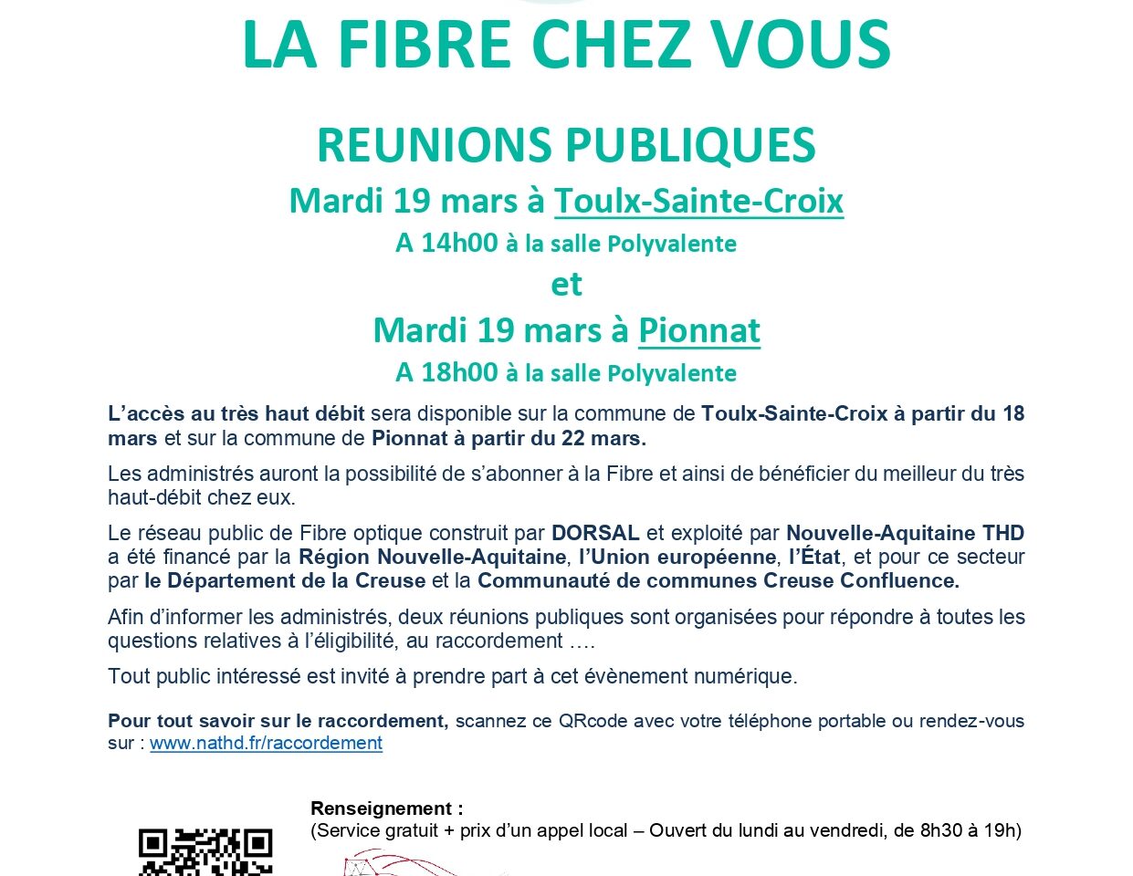 L’accès au très haut débit sera disponible sur la commune de Toulx-Sainte-Croix à partir du 18 mars et sur la commune de Pionnat à partir du 22 mars.